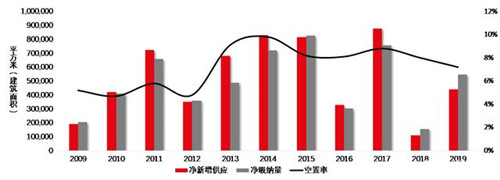 受到軍運(yùn)會期間項(xiàng)目停工以及建設(shè)工程聯(lián)合驗(yàn)收實(shí)施的影響,使得預(yù)計(jì)在2019年末入市的項(xiàng)目延期。再疊加原計(jì)劃在2020年入市的項(xiàng)目,致使辦公樓市場在2020年將迎來新增供應(yīng)的歷史高峰——預(yù)計(jì)將有78.2萬平方米的新增甲級供應(yīng)和94.6萬平方米的新增乙級供應(yīng)進(jìn)入市場,市場仍將呈現(xiàn)供大于求的特征。