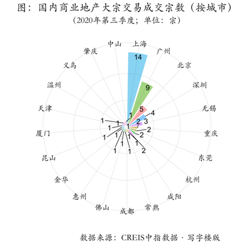 2020年三季度,隨著國內(nèi)經(jīng)濟(jì)主要經(jīng)濟(jì)指標(biāo)不斷改善,發(fā)展動(dòng)能增強(qiáng),景氣度持續(xù)提升,國內(nèi)部分城市寫字樓租賃和投資市場活躍度有所回升,租金整體企穩(wěn),空置率小幅上升。頭部互聯(lián)網(wǎng)企業(yè)對寫字樓市場拉動(dòng)效應(yīng)明顯。投資市場方面,商業(yè)地產(chǎn)各個(gè)板塊的大宗交易各有斬獲,寫字樓仍然占據(jù)大宗交易成交額的最大份額。