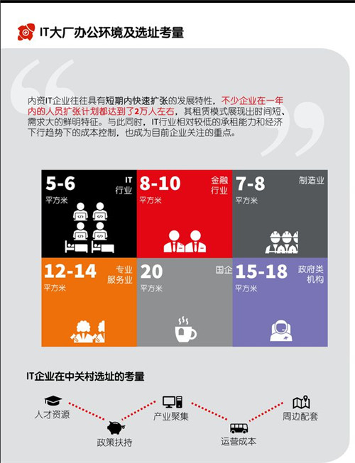 隨著IT行業(yè)蓬勃發(fā)展,中關(guān)村區(qū)域也面臨現(xiàn)代化、標準化物業(yè)可租賃面積稀缺的困境,在某種程度上限制了IT企業(yè)在市區(qū)范圍內(nèi)進一步擴張和升級機會。