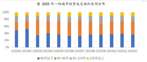 一線城市租客消費降級顯著,月均支出和租住面積均縮減。根據(jù)貝殼研究院數(shù)據(jù),2020年,一線城市租客套均支出同比下降5.8%,其原因一方面是由于租金水平的下降,另一方面則是租客租住面積下降。2020年一線城市60-90平米的房屋成交占比同比去年提高了3.7個百分點,60平米以下的房屋占比則基本持平,90平米以上的房屋占比均小幅下降。部分租客因受疫情的影響,會選擇工作周邊的小戶型房屋,以減少公共交通的出行,租金成本下降則推動了這種趨勢。
