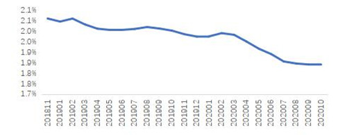 依據(jù)貝殼研究院數(shù)據(jù),2020年1-10月全國重點40城平均租金收益率為1.9%,同比下降了0.1個百分點。自2018年11月,全國租金回報率整體呈現(xiàn)下滑趨勢,八成城市的租金收益率保持下降。主要原因是由于租金下降、房價上漲所致。在租金收益率下降的城市中,超五成城市是由于租金下降、房價上漲,超三成是由于租金降幅超過房價降幅,近一成是由于租金漲幅小于房價漲幅。