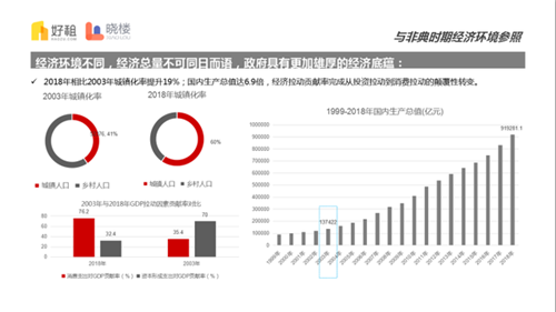 在經(jīng)濟(jì)環(huán)境層面,中國(2019年)經(jīng)濟(jì)總量已接近100萬億元,經(jīng)濟(jì)底蘊(yùn)之雄厚今非昔比,2018年相比2003年城鎮(zhèn)化率提升19%,國內(nèi)生產(chǎn)總值達(dá)6.9倍,經(jīng)濟(jì)拉動貢獻(xiàn)率完成從投資拉動到消費(fèi)拉動的顛覆性轉(zhuǎn)變。再結(jié)合內(nèi)外部環(huán)境來看,非典時(shí)期城鎮(zhèn)化需求、人口紅利逐步釋放,經(jīng)濟(jì)處于高度上升期,而當(dāng)前正處于轉(zhuǎn)變發(fā)展方式、優(yōu)化經(jīng)濟(jì)結(jié)構(gòu)、轉(zhuǎn)換增長動力的三大戰(zhàn)略轉(zhuǎn)型期,經(jīng)濟(jì)增速總體放緩。