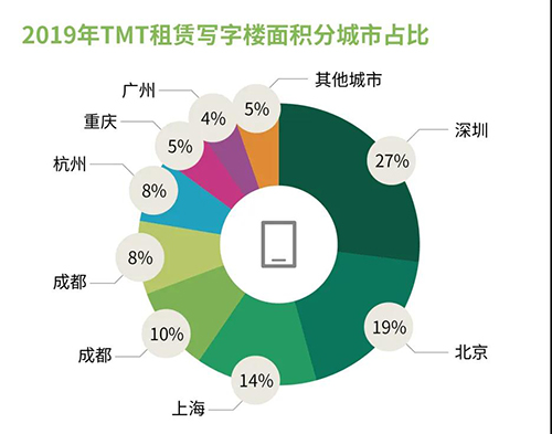 2019年,TMT、金融業(yè)和專業(yè)服務(wù)業(yè)累計(jì)占中國(guó)寫字樓租賃總量的60%,我們預(yù)計(jì)2020年這一占比將進(jìn)一步提升。