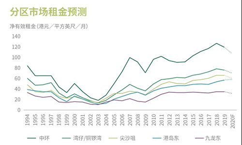空置率的上升和市場(chǎng)氣氛的疲弱將促使2020年甲級(jí)寫字樓的租金進(jìn)一步軟化。其中,由于空置率正在攀升,而租戶又避免支付過高租金,中央商務(wù)區(qū)的壓力最大。港島東將繼續(xù)受益于低空置率,以及來自中環(huán)和灣仔及銅鑼灣的搬遷需求。東九龍也是遷離核心區(qū)的理想地點(diǎn),但該分區(qū)市場(chǎng)的空置率較高,致使在短期內(nèi)租金難以上升。