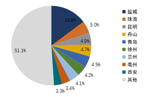 2019年,百強代表企業(yè)新增商辦用地較多的城市主要有鹽城、珠海、昆明、舟山等二線及三四線城市,其中長三角及珠三角區(qū)域仍是布局熱點。