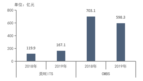 圖 房地產(chǎn)企業(yè)2018-2019年類REITs和CMBS發(fā)行情況