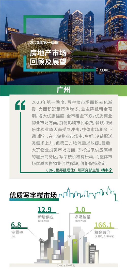 “2020年第一季度,廣州及周邊珠三角城市的工業(yè)物業(yè)出售案例顯著增長,除了由于產業(yè)轉型升級的原因以外,疫情對部分制造業(yè)和外貿的影響可能也增加了此類資產的出售機會。但展望未來六個月,符合機構投資者需求的寫字樓及零售物業(yè)仍然稀缺,價格仍將保持堅挺!