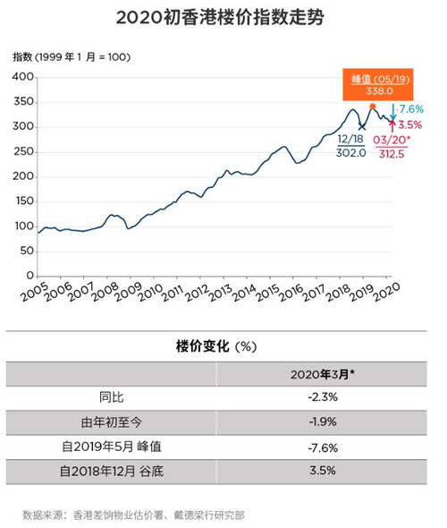 香港物業(yè)市場受到去年社會事件和年初疫情的雙重影響,在2020年第一季度: