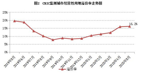 2020年5月,在推進(jìn)生產(chǎn)要素市場(chǎng)化的大環(huán)境下,土地市場(chǎng)交易景氣持續(xù)回升,成交面積創(chuàng)下年內(nèi)新高,溢價(jià)率也在上月上升的基礎(chǔ)上再漲0.2個(gè)百分點(diǎn),實(shí)現(xiàn)2020年來(lái)的5連漲,市場(chǎng)熱度持續(xù)上升。