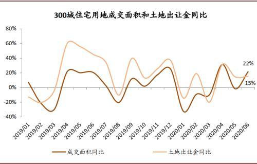 圖表: 6月前兩周300城住宅用地成交面積同比增長22%,土地出讓金同比增長15%