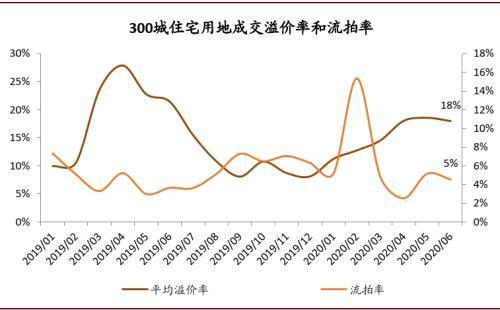圖表: 300城住宅用地成交溢價率自年初以來持續(xù)上行,6月前兩周已升至18%