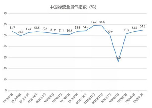 隨著供應(yīng)鏈上下游逐步恢復(fù)正常,物流業(yè)景氣指數(shù)繼續(xù)保持平穩(wěn)回升的態(tài)勢(shì)。5月份,中國物流業(yè)景氣指數(shù)為54.8%,較上月回升1.2個(gè)百分點(diǎn)。