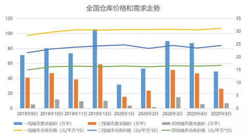 從全國倉庫需求上看,根據(jù)物聯(lián)云倉的數(shù)據(jù),5月一線城市需求面積49.18萬平方米,二線城市需求面積26.16萬平方米,其他城市需求面積6.91萬平方米?傮w來看,各線城市的倉庫需求都與去年同期有著相當(dāng)?shù)牡?/P>
