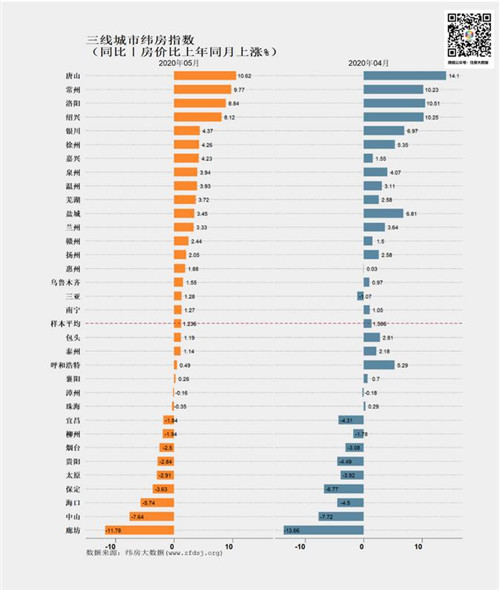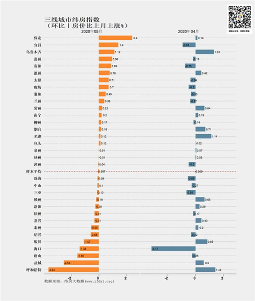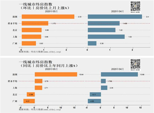 根據(jù)緯房大數(shù)據(jù)發(fā)布的2020年5月緯房指數(shù),2020年5月,一線城市房價較快上漲,二線城市房價穩(wěn)步上漲,三線城市相對平穩(wěn),四線城市略有回調(diào)。