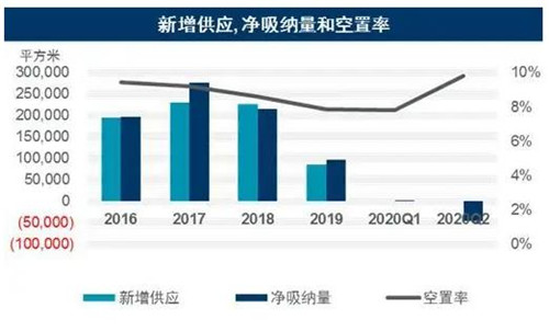 新冠肺炎疫情為天津零售市場持續(xù)增壓,疫情影響下,一季度零售市場基本處于停滯狀態(tài),二季度,雖然市場在逐漸復(fù)蘇中,但相比疫情前,購物中心客流量大幅下降,部分購物中心出現(xiàn)大面積退租現(xiàn)象,至此,全市二季度市場凈吸納量創(chuàng)歷史新低,為-46,830平方米。整體市場空置率環(huán)比推升2個(gè)百分點(diǎn)至9.8%。全市平均租金持續(xù)環(huán)比下降1%至每月每平方米人民幣450元。