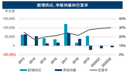 疫情的爆發(fā)導(dǎo)致部分國(guó)有企業(yè)為了平穩(wěn)運(yùn)營(yíng)、減少辦公成本,已經(jīng)或計(jì)劃搬遷至自有樓宇辦公。受此影響,本季度大連市甲級(jí)寫(xiě)字樓市場(chǎng)錄得吸納量為負(fù)8,152平方米,整體空置率環(huán)比提高0.9個(gè)百分點(diǎn)至30.2%。