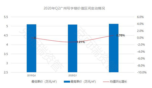 廣州一季度資產(chǎn)價值區(qū)間略微下滑,二季度開始小幅回升,表現(xiàn)出較強(qiáng)的韌性和資產(chǎn)抗風(fēng)險能力。二季度全球開啟寬松貨幣政策,低息成為常態(tài),持有物業(yè)相對保值穩(wěn)定,對資金更有吸引力。此外疫情之后全面復(fù)工復(fù)產(chǎn),對廣州寫字樓資產(chǎn)價值恢復(fù)有一定促進(jìn),整體來看廣州資產(chǎn)價值保持穩(wěn)定,微升 0.7% 。