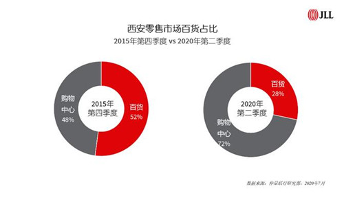 今年受疫情影響,百貨業(yè)在本就激烈的競爭環(huán)境中迎難而上。據(jù)國家統(tǒng)計局數(shù)據(jù),1-3月份限額以上零售業(yè)單位中的超市零售額同比增長1.9%,而百貨店、專業(yè)店和專賣店分別下降34.9%、24.7%和28.7%。受購物中心及互聯(lián)網(wǎng)電商沖擊,西安市場上百貨項目整改或停業(yè)的案例屢見不鮮。自2016年百盛東大街店停業(yè)開始,百貨業(yè)進入洗牌時期,而此次疫情更是加速這一洗牌進程。除世紀金花珠江時代廣場店閉店外,民生百貨騾馬市店空置率提高,群光廣場零售部分整體關閉進行調(diào)改,開元商場也重塑外立面并進行負一層整改。過去五年間,西安百貨經(jīng)營面積在優(yōu)質(zhì)零售物業(yè)存量中的占比已由52%下降至28%,行業(yè)優(yōu)勝劣汰正推動西安零售物業(yè)市場成熟度的提升,市場或在調(diào)整中迎來新機。