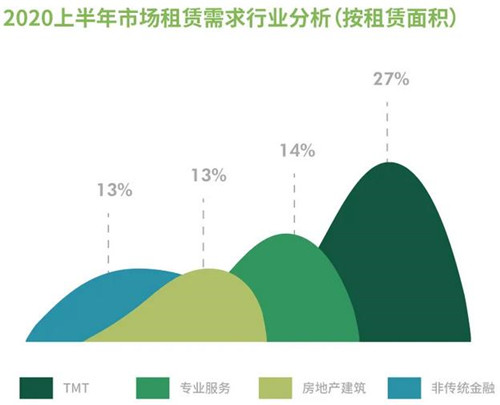 按行業(yè)來看,新科技媒體(TMT)、專業(yè)服務(wù)及房地產(chǎn)建筑為上半年三大主要需求來源。TMT行業(yè)占比新增需求的27.3%位居首位,在線娛樂、在線辦公軟件等“在線+”企業(yè)在疫情期間逆勢(shì)擴(kuò)張,由此釋放出辦公需求新增點(diǎn),其中來自于內(nèi)資在線教育企業(yè)的辦公需求最為活躍,市場(chǎng)見證多家在線教育頭部企業(yè)在渝擴(kuò)張版圖;專業(yè)服務(wù)業(yè)緊隨其后,占比13.5%,宏觀環(huán)境波動(dòng)催生律所等專業(yè)機(jī)構(gòu)的持續(xù)擴(kuò)張,而疫情之下更多企業(yè)選擇將財(cái)務(wù)、人力資源、行政等職能外包給專業(yè)機(jī)構(gòu)以提效降費(fèi)繼而延生辦公需求;房地產(chǎn)建筑業(yè)占比12.7%為第三大需求來源,隨著成渝雙城經(jīng)濟(jì)圈及西部科學(xué)城的加快建設(shè),房地產(chǎn)建筑行業(yè)發(fā)展將持續(xù)利好于新一輪戰(zhàn)略機(jī)遇。