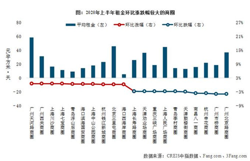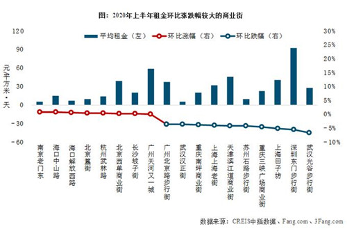 。2)租金漲跌幅較大的商業(yè)街