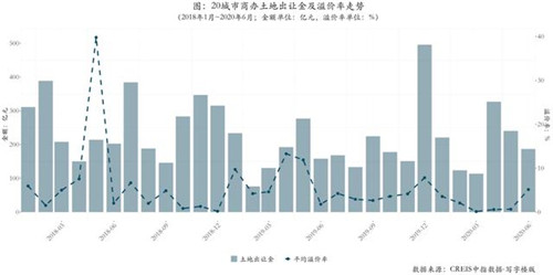 上半年20城市商辦類土地出讓金同比增長(zhǎng)13.59%,平均溢價(jià)率降至2.03%。