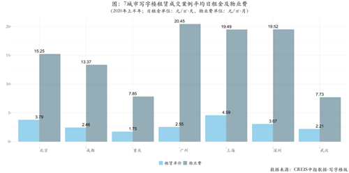 上半年,上海成交日租金最高,廣州物業(yè)費(fèi)最高。