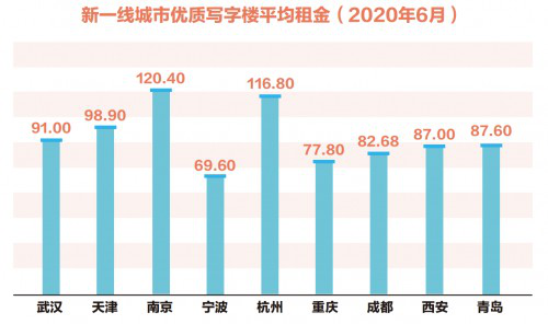 截至2020年6月,武漢優(yōu)質(zhì)寫字樓總存量為526萬平方米,寫字樓平均入住率為62.7%,平均租金約90.8元/㎡/月,租金同比下滑4.5%;其中甲級寫字樓存量191萬平方米,平均入住率65.7%,平均租金108.8元/㎡/月,租金環(huán)比一季度下跌5.1%。