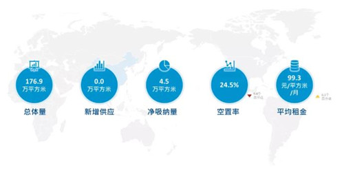 本季度全市無新增項目入市,甲級寫字樓總體量依然保持在176.9萬平方米。