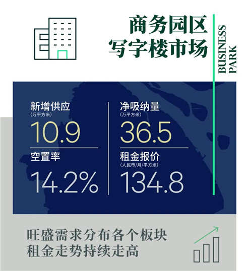行業(yè)需求方面,TMT類包括游戲、電商等在核心拓展區(qū)升級(jí)擴(kuò)張持續(xù);傳統(tǒng)金融如銀行、基金、證券、私募需求活躍度再度提升,而醫(yī)藥及生命科學(xué)類更是迎來新一輪擴(kuò)張布局,其中不乏擴(kuò)租的大型藥企和新進(jìn)如疫苗研發(fā)等企業(yè)。此外,隨著對(duì)外開放政策落地,相應(yīng)的專業(yè)服務(wù)類高水準(zhǔn)律所等需求季內(nèi)增多,而全市外資需求也錄得疫情以來的首次增長。從成交類型與區(qū)位看,搬遷擴(kuò)租需求占比高達(dá)70%,其中區(qū)位或品質(zhì)升級(jí)的搬遷需求占近六成。前灘和南京西路等市場出現(xiàn)一房難求的局面,尤其是來自內(nèi)外資醫(yī)藥類企業(yè)擴(kuò)張需求,季內(nèi)前灘空置率更是低至4.3%,僅次于外灘;隨著主力需求活躍度的演變,除陸家嘴主要吸引金融類內(nèi)部擴(kuò)張選址外,人民廣場、北外灘等納入亦增多;而位于核心拓展區(qū)和新興商務(wù)區(qū)的新項(xiàng)目,憑借前期預(yù)租的激勵(lì)策略仍持續(xù)錄得如TMT類租戶區(qū)位和品質(zhì)提升的目的地,不乏來自于商務(wù)園區(qū)及其他次級(jí)樓宇的選址案例。租金表現(xiàn)上,受租賃活動(dòng)全面回暖的帶動(dòng),全市租金止跌企穩(wěn),報(bào)價(jià)和有效租金較上季度分別上調(diào)0.6%和0.8%,其中以前灘和南京西路回暖最為明顯。