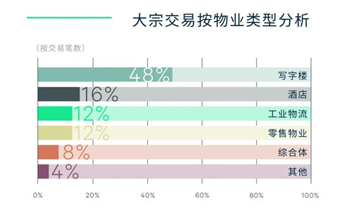 寫字樓物業(yè)仍居投資物業(yè)類型的主導(dǎo)地位,占比48%,其中近六成為商務(wù)園區(qū)物業(yè)。自用買家需求旺盛,傳統(tǒng)寫字樓新興板塊的物業(yè)備受科技與制造業(yè)公司之青睞,如前程無憂與雅戈?duì)柤瘓F(tuán)分別在晶耀前灘及虹橋匯購置總部樓宇;另一方面,得益于國內(nèi)高科技行業(yè)的蓬勃發(fā)展,商務(wù)園區(qū)市場的租賃表現(xiàn)在疫情中率先反彈,使得其對(duì)于投資者的吸引力正在持續(xù)增強(qiáng),位于漕河涇板塊的凱科國際大廈季內(nèi)由內(nèi)資基金完成收購。伴隨穩(wěn)定的消費(fèi)復(fù)蘇,酒店及零售類物業(yè)的成交也愈發(fā)活躍,分別占比16%與12%。此外,綜合體項(xiàng)目領(lǐng)航社與世紀(jì)盛薈廣場相繼由地產(chǎn)公司完成交易;作為另類資產(chǎn)的數(shù)據(jù)中心錄得本季度單筆最高成交金額,普洛斯60億收購松江互聯(lián)網(wǎng)數(shù)據(jù)中心50.1%股權(quán)。投資策略方面,投資者依舊偏好具有穩(wěn)定現(xiàn)金流的物業(yè)資產(chǎn),季內(nèi)交易仍以核心增值型為主,占比69%;而在城市更新的加速進(jìn)程下,增值型投資位居第二,占比23%。