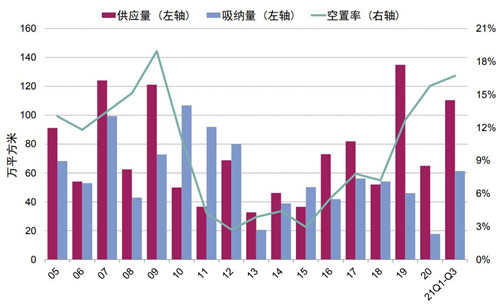 北京甲級寫字樓平均租金為每月每平方米人民幣341.7元,平均租金指數(shù)環(huán)比上升0.5%;全市空置率為16.7%,環(huán)比下降0.6個百分點(diǎn),近 11 個季度以來首次實(shí)現(xiàn)"租金漲、空置跌"的走勢。就2021年前三季度而言,北京寫字樓市場需求持續(xù)釋放,但四季度新增供應(yīng)量依舊巨大,未來一段時間全市寫字樓仍將面臨去化壓力。