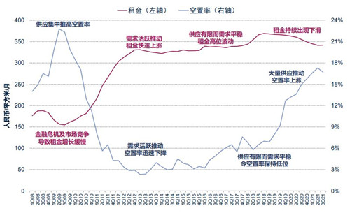 7月2日,國務(wù)院辦公廳印發(fā)《關(guān)于加快發(fā)展保障性租賃住房的意見》,從土地支持、優(yōu)化行政審批、資金支持、減稅降費(fèi)和金融支持等五方面入手,明確保障性租賃住房基礎(chǔ)制度和支持政策,保障性租賃住房再次迎來重大政策支持。8月31日,國新辦就"努力實(shí)現(xiàn)全體人民住有所居有關(guān)情況"舉行發(fā)布會,在房住不炒和住有所居的新基調(diào)下,房地產(chǎn)市場未來將形成"政府-市場"并行、租售并舉的新局面。而在北京高端住宅租賃市場方面,全市服務(wù)式公寓市場迎來一個新增項(xiàng)目入市,受此影響,三季度服務(wù)式公寓市場的空置率環(huán)比上升3.6個百分點(diǎn)至20.3%,平均租金為人民幣每平方米每月248元。