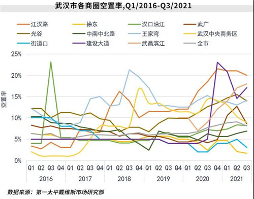 2021年第三季度,武漢零售物業(yè)市場未迎來新增項(xiàng)目入市。季內(nèi),位于中南中北路商圈的漢街萬達(dá)廣場閉店。截至季末,全市零售物業(yè)總存量下降至664萬平方米。