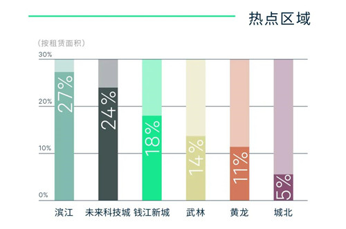 需求方面,TMT仍是杭州市場(chǎng)最為穩(wěn)健的新增擴(kuò)租需求,當(dāng)季頭部網(wǎng)絡(luò)科技企業(yè)在未來科技城錄得大面積過渡需求,而濱江持續(xù)吸引高端網(wǎng)紅、直播視頻等企業(yè),黃龍、武林亦承接部分內(nèi)部擴(kuò)租,如電商、云數(shù)據(jù)等;金融類以銀行、證券為首在錢江新城等區(qū)域持續(xù)布局,消費(fèi)品制造業(yè)類新能源汽車和專業(yè)服務(wù)類律所的搬遷擴(kuò)租需求緊隨其后,此外,受浙江衛(wèi)視產(chǎn)業(yè)集聚影響,文娛服務(wù)類需求在武林版塊亦有釋放。