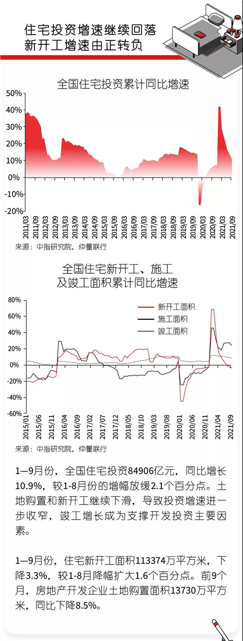 仲量聯(lián)行近日發(fā)布2021年第三季度全國住宅地產(chǎn)市場報告指出,隨著信貸環(huán)境收緊加之調(diào)控政策加碼,房價漲幅出現(xiàn)回落;土拍市場降溫,溢價率下降;新開工面積增速下滑顯著,住宅投資增速進一步收窄。