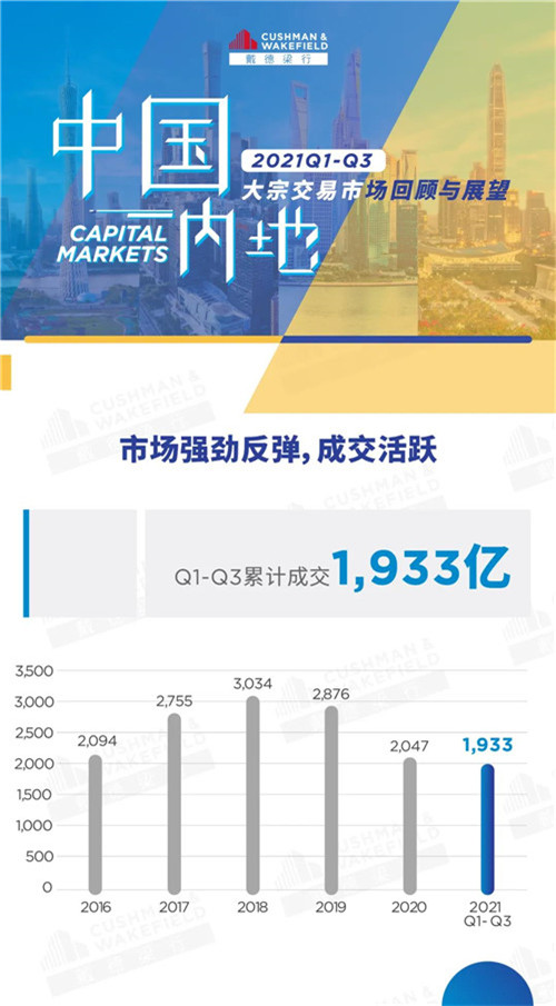 近日,戴德梁行資本市場部發(fā)布2021年Q1-Q3中國內(nèi)地大宗交易市場回顧與展望指出,前三季度大宗市場持續(xù)回暖,基本追平去年全年成交。