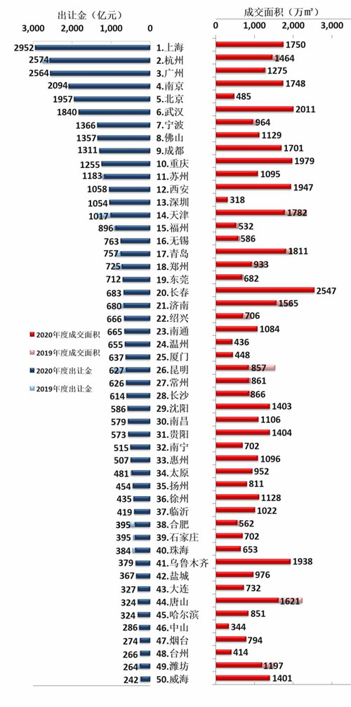 2020年全國(guó)300城市土地收入排行榜TOP50