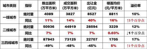▌各類市場(chǎng):一線供需兩旺,二線收金上揚(yáng),三四線供求雙降