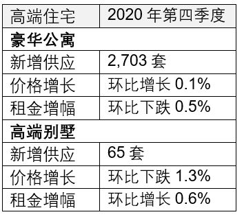 下半年市場需求的回暖推動豪華公寓售價在第三季度回歸正增長區(qū)間,而在第四季度基本保持穩(wěn)定。盡管許多開發(fā)商持續(xù)推出年底促銷優(yōu)惠活動,拉動銷售增長,但也有很多市場認可度高的優(yōu)質(zhì)項目提升了售價。“盡管看房量和銷售額均有所回升,但豪華公寓價格增長預計將在2021年持續(xù)受限,”米陽表示,“為更好地控制房企債務規(guī)模,監(jiān)管部門出臺的‘三道紅線’政策將于2021年起全面實施。政策和融資渠道收緊將為開放商持續(xù)施壓,預計短期內(nèi)房企將更注重銷售回款,而非價格增長。”