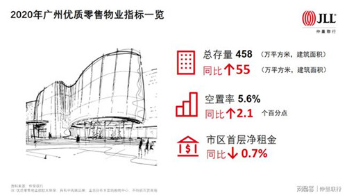 供應方面,預計2021年廣州全市新增供應面積約為60萬平方米,其中大半位于市郊。由于需求尚需時日才能完全恢復,不少新項目和尚未成熟項目的去化存在一定壓力,尤其是遠郊的幾個項目,預計市郊不少業(yè)主仍將采取降低租金策略以實現(xiàn)快速去化。但市區(qū)核心商圈的優(yōu)質項目將維持其對零售商的較強吸引力,市區(qū)租金預計大體保持平穩(wěn)。