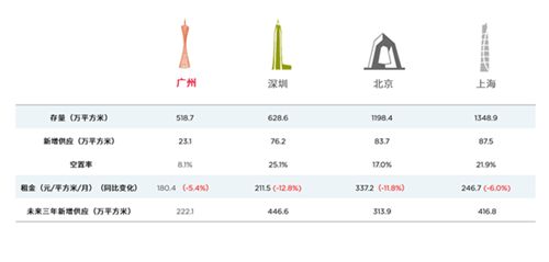同時(shí)值得關(guān)注的是,未來四年,廣州將迎來32棟總部自建的高端寫字樓物業(yè)入市,總面積約220.91萬平方米,約占全市供應(yīng)的70%。其中,實(shí)業(yè)總部占比最高,其次為TMT行業(yè)、金融總部、房地產(chǎn)及其它多元化行業(yè)總部。
