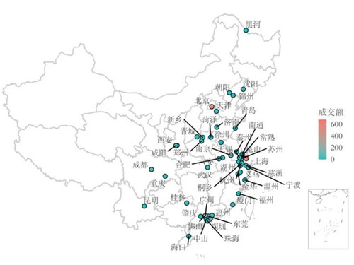 2020年國內(nèi)大宗交易城市分布情況(成交額單位:億元)