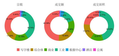 資產(chǎn)類別:寫字樓成交額占比接近一半,工業(yè)物業(yè)交易升溫