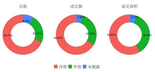 內(nèi)資買家主導(dǎo)市場,宗數(shù)、成交額占比近七成,成交面積占比近六成