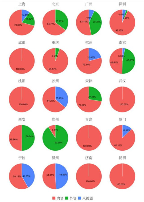 北京外資大宗交易占比超三成,超越上海成為外資買家投資額最高的城市。廣州的外資占比達(dá)39.78%,成為一線城市中外資買家投資額占比最高的城市。