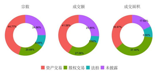 資產(chǎn)交易的占比超四成,股權(quán)交易近三成