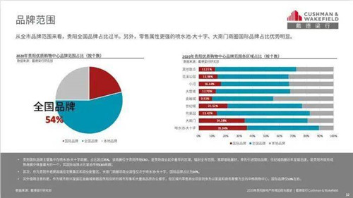 從全市品牌范圍來看,貴陽全國品牌占比過半。另外,零售屬性更強的噴水池-大十字、大南門商圈國際品牌占比優(yōu)勢明顯。噴水池-大十字商圈位于貴陽傳統(tǒng)CBD,是貴陽商業(yè)起步最早的區(qū)域,輻射全市范圍,客群基礎(chǔ)最好,率先引進(jìn)國際品牌;世紀(jì)城商圈近年發(fā)展迅速,是貴陽市現(xiàn)有成熟商圈中體量最大的一個,其國際品牌占比緊追噴水池-大十字商圈。