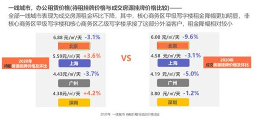 曉樓平臺(tái)負(fù)責(zé)人匡健鋒表示,伴隨2020年下半年經(jīng)濟(jì)復(fù)蘇,商辦市場下行趨勢(shì)放緩。“北京上海等一線城市重點(diǎn)商圈空置率降幅均在年末收窄,在下游需求端,客戶對(duì)價(jià)格更加敏感,TMT行業(yè)仍為疫情防控期間的租金貢獻(xiàn)擔(dān)當(dāng),傳統(tǒng)產(chǎn)業(yè)的互聯(lián)網(wǎng)化升級(jí)和人工智能等科技創(chuàng)新企業(yè)有望成為新的市場增量。”