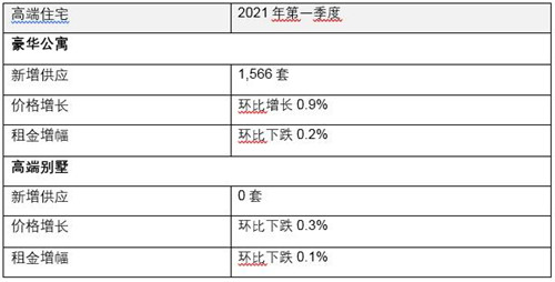 盡管一季度并非傳統(tǒng)銷售旺季,但豪華公寓成交量卻達(dá)到470套,較過去五年一季度的平均水平高出12.7%。受疫情影響,今年春節(jié)期間"就地過年"現(xiàn)象較為普遍,看房、購房等活動(dòng)在春節(jié)假期保持活躍。積極的市場情緒吸引購房者不斷入市,加之充足的新增供應(yīng)以及開發(fā)商推盤節(jié)奏的加快,都在一定程度上助推了市場上揚(yáng)趨勢。