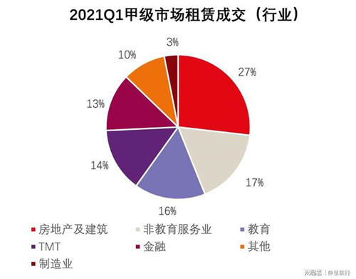 從甲級市場新成交的行業(yè)類型看,一季度房地產(chǎn)行業(yè)及建筑業(yè)領(lǐng)跑,主要原因是部分開發(fā)商搬遷或升級至自有項(xiàng)目中;隨著近幾年更多的新增供應(yīng)入市,此趨勢將有望延續(xù)。專業(yè)服務(wù)業(yè)一季度表現(xiàn)活躍,律師事務(wù)所延續(xù)著2020年的強(qiáng)勁需求。市場較為關(guān)心在線教育行業(yè)的擴(kuò)張情況,至少從一季度數(shù)據(jù)看,其擴(kuò)張步伐并未停止,光谷繼續(xù)錄得大面積擴(kuò)張案例。